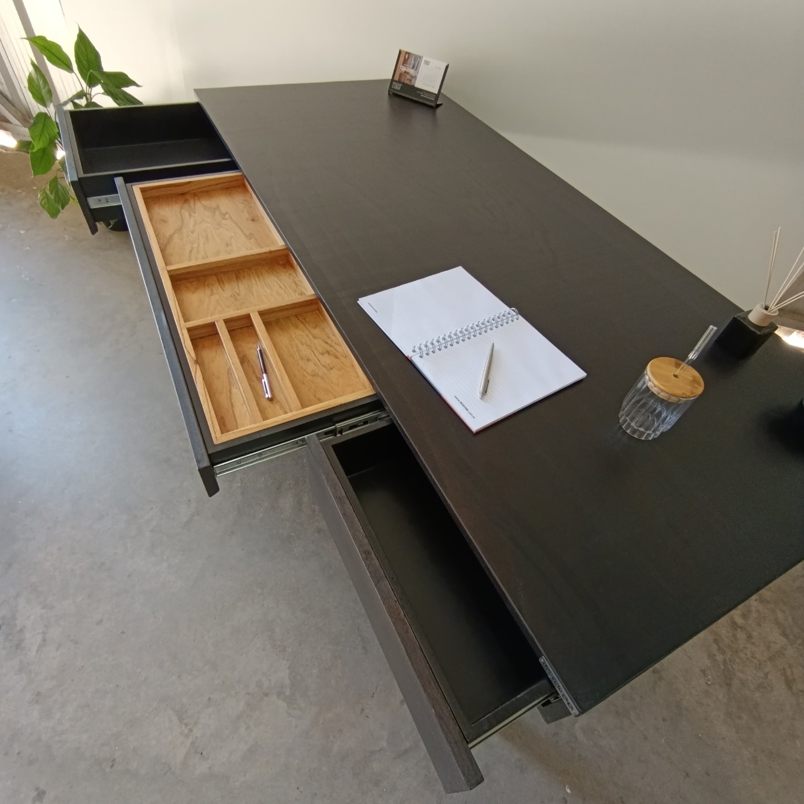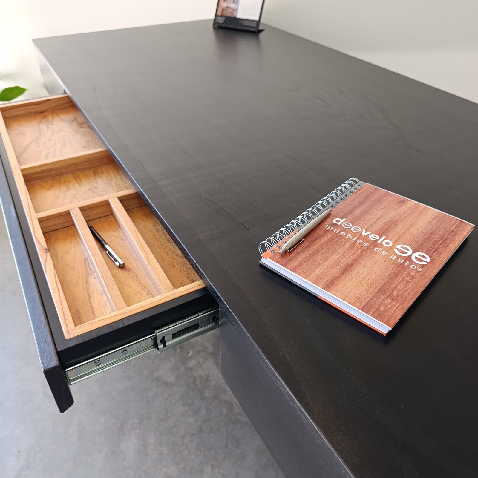 1 Cajón central para hojas y lapiceras.